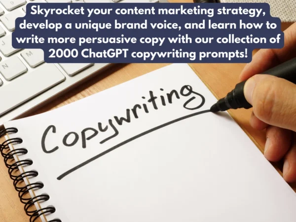 Whether you’re a small business owner, marketer, or copywriter, this product will help you streamline your writing process and deliver results faster. With 2000 ChatGPT Prompts for Copywriting, you’ll never have to waste time coming up with ideas from scratch again. Instead, you can focus on crafting compelling copy that resonates with your audience and drives business growth. Try it today and take your copywriting to the next level!